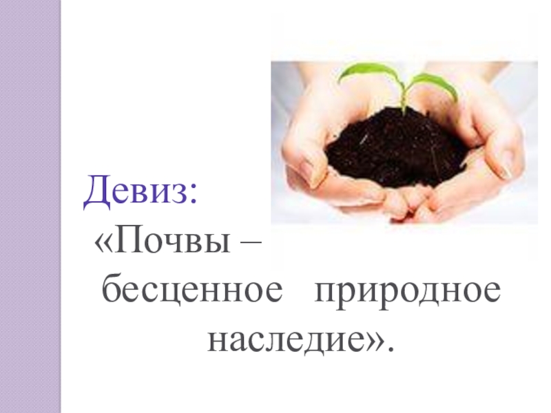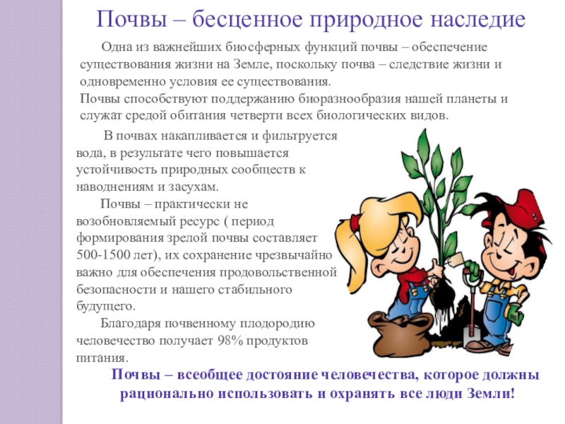 Почвы – всеобщее достояние человечества, которое должны рационально использовать и охранять все люди Земли!