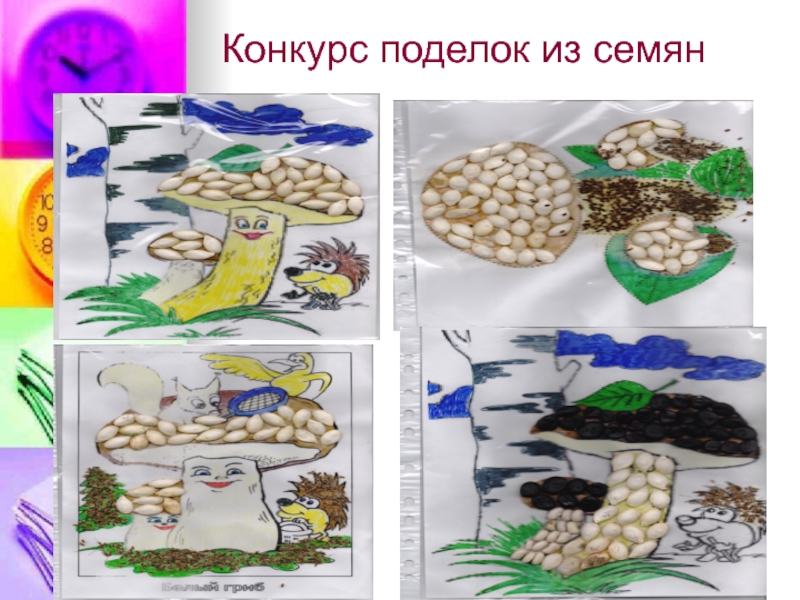 Презентация, доклад мастер класс по биологии Конкурс поделок из семян