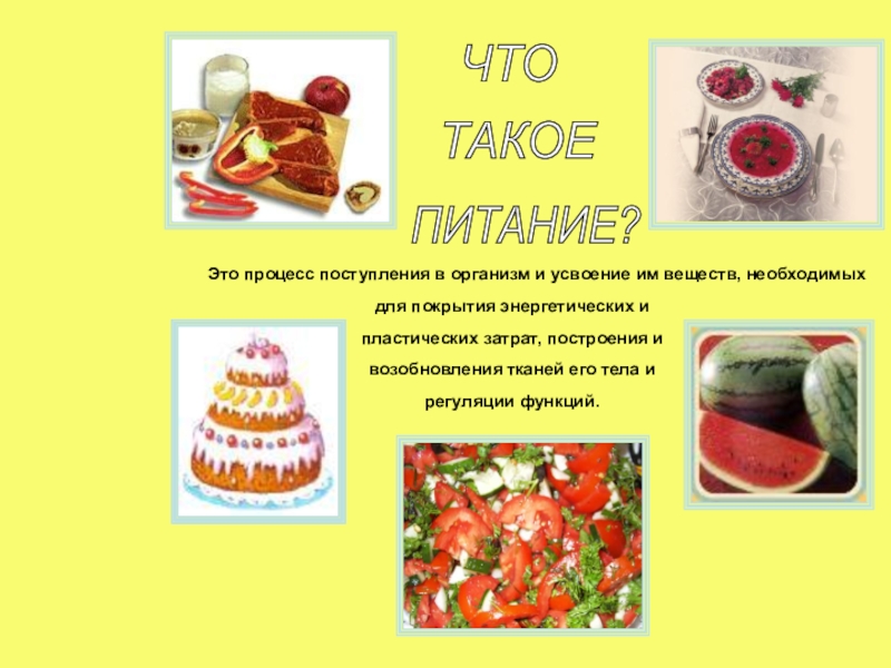 для покрытия энергетических и пластических затрат, построения и возобновления тканей его тела и регуляции функций.