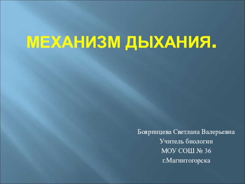 Слайд 1МЕХАНИЗМ ДЫХАНИЯ.
