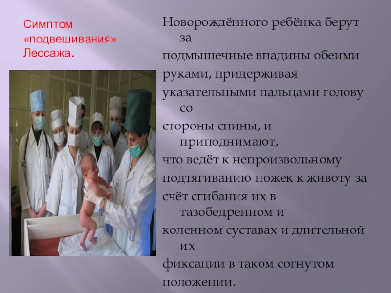 Слайд 13Симптом «подвешивания» Лессажа.
