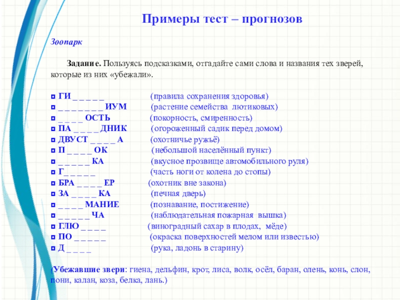 Виды тестовых заданий