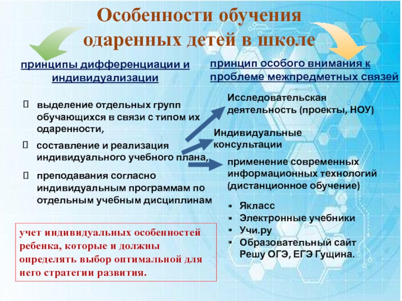 учет индивидуальных особенностей ребенка, которые и должны определять выбор оптимальной для него стратегии развития.