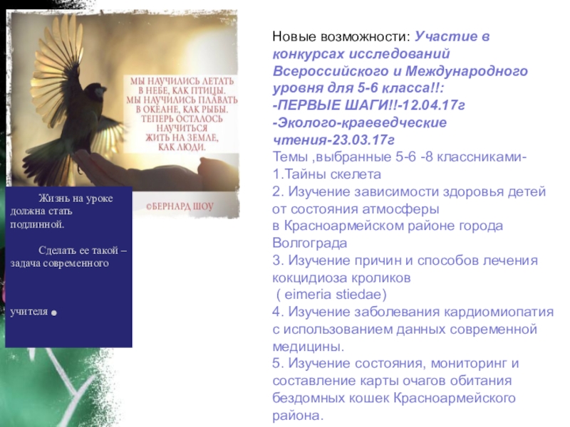Новые возможности: Участие в конкурсах исследований Всероссийского и Международного уровня для 5-6 класса!!: