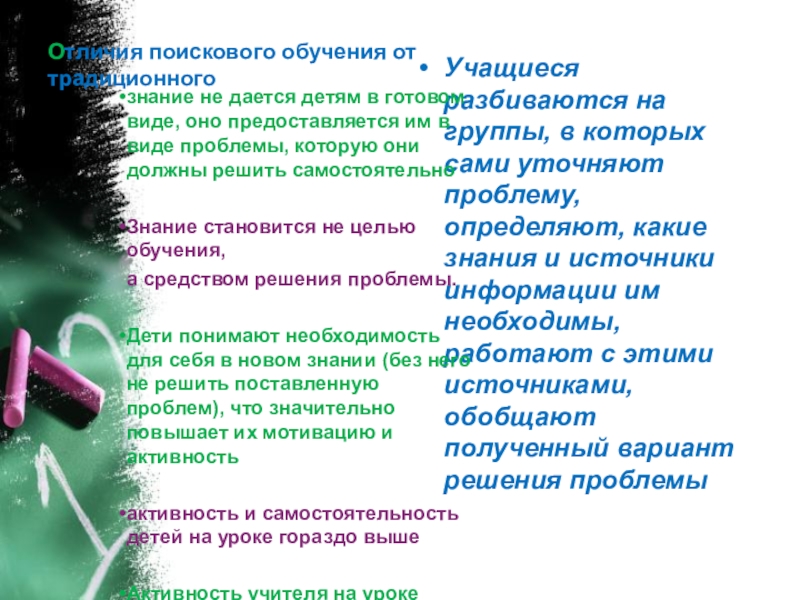 знание не дается детям в готовом виде, оно предоставляется им в виде проблемы, которую они должны решить самостоятельно