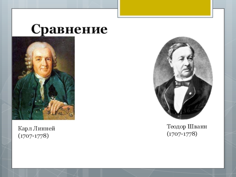 СравнениеКарл Линней(1707-1778)Теодор Шванн(1707-1778)