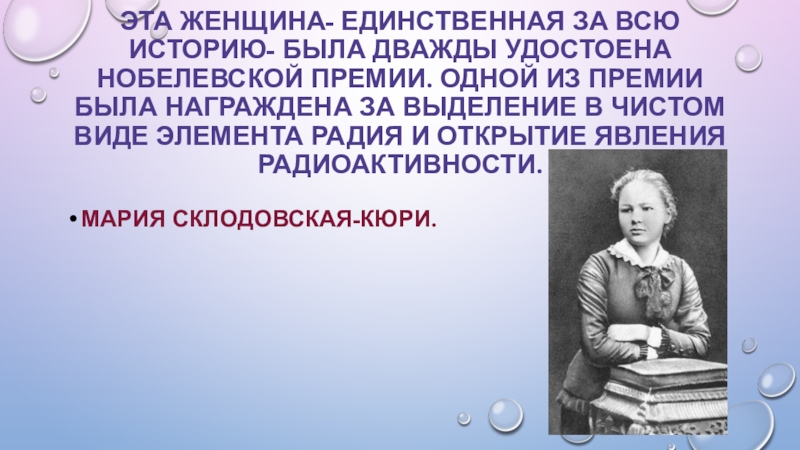 МАРИЯ СКЛОДОВСКАЯ-КЮРИ.