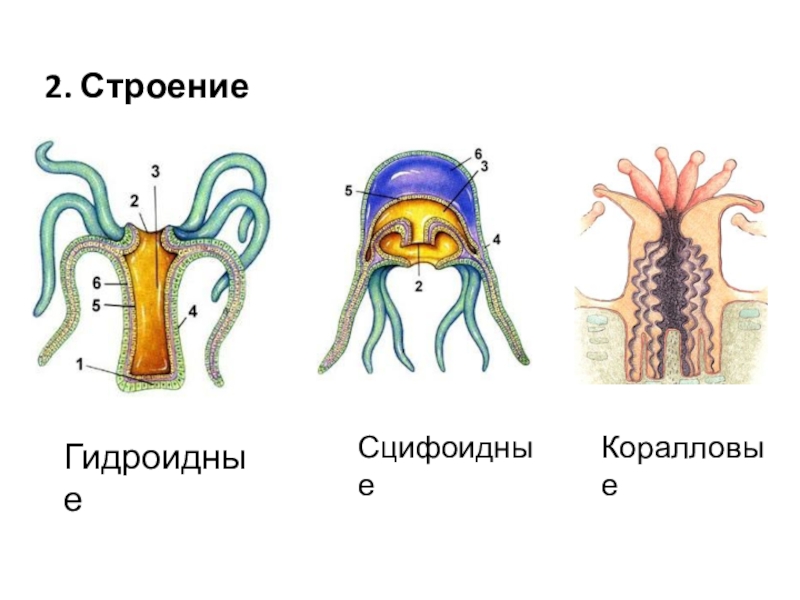 2. СтроениеГидроидныеСцифоидныеКоралловые
