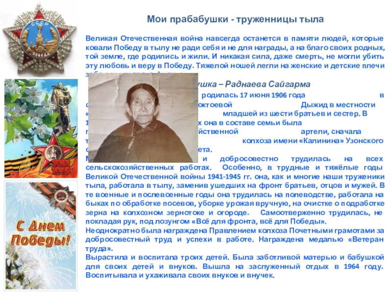 Слайд 10Мои прабабушки труженницы тыла