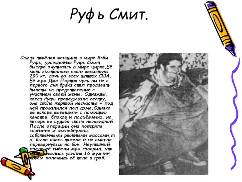 Самая тяжёлая женщина в мире Бэби Руфь, урождённая Руфь Смит,