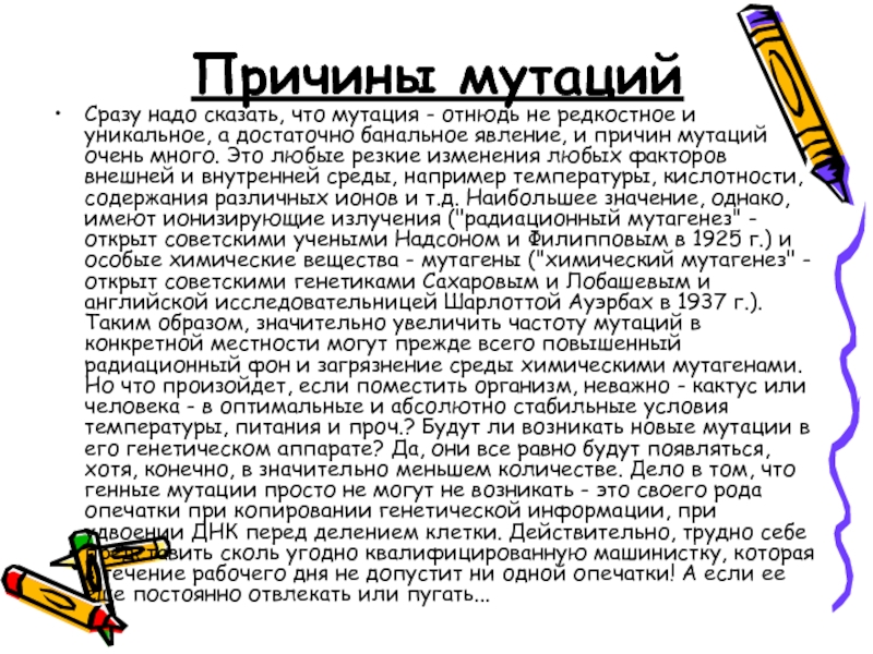 Слайд 6По этой самой причине мутации возникают не только в каких-то экстремальных