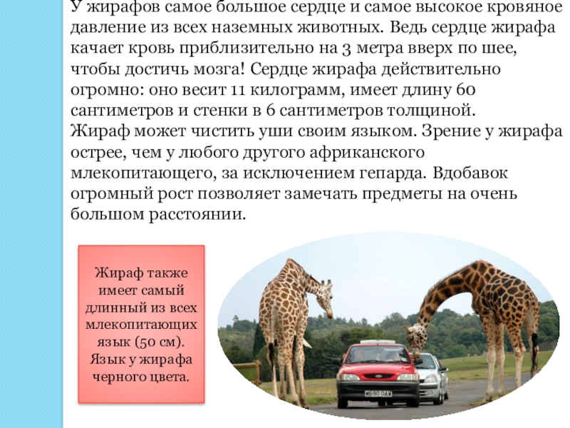 Слайд 3У жирафов самое большое сердце и самое высокое кровяное давление из