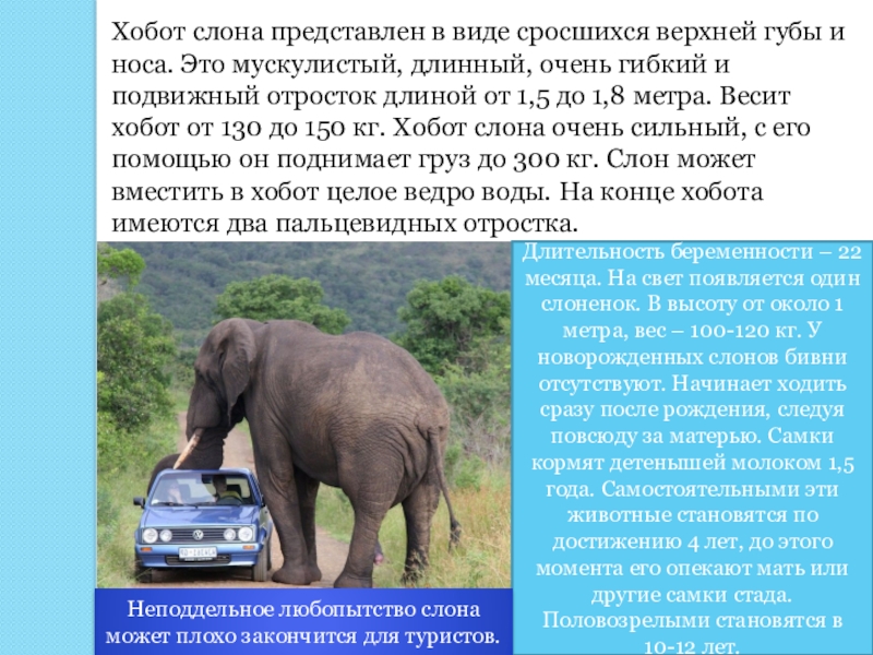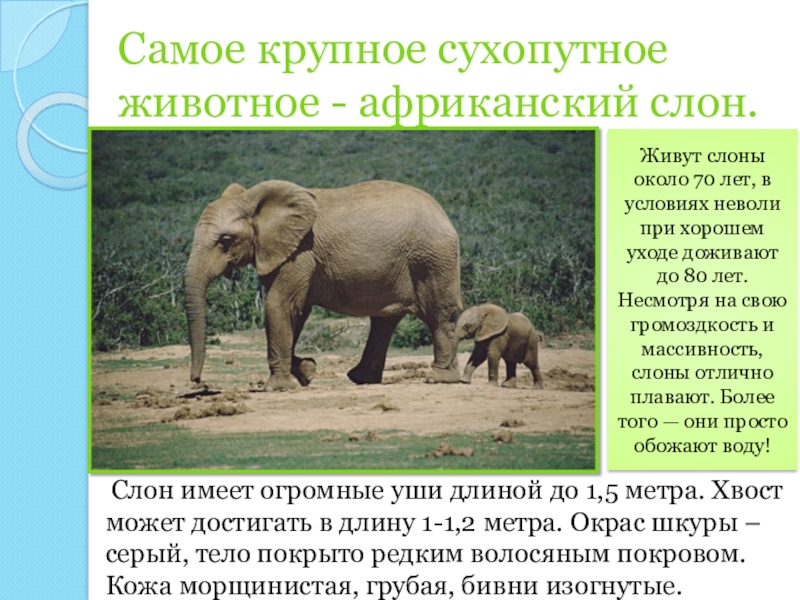 Слайд 15Высота самца африканского слона колеблется от 3,2 до 4 метров, однако