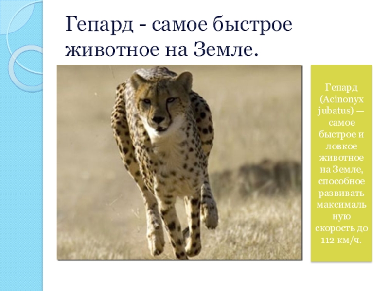 Слайд 7Гепард - самое быстрое животное на Земле.