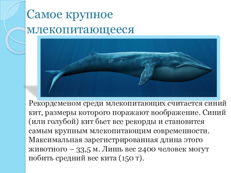 Слайд 24Самое крупное млекопитающееся