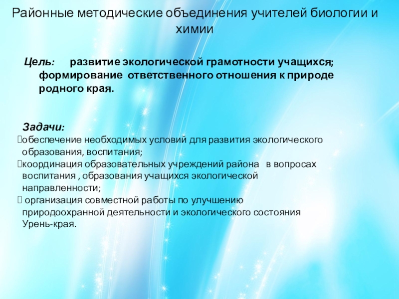координация образовательных учреждений района в вопросах воспитания , образования учащихся экологической направленности;