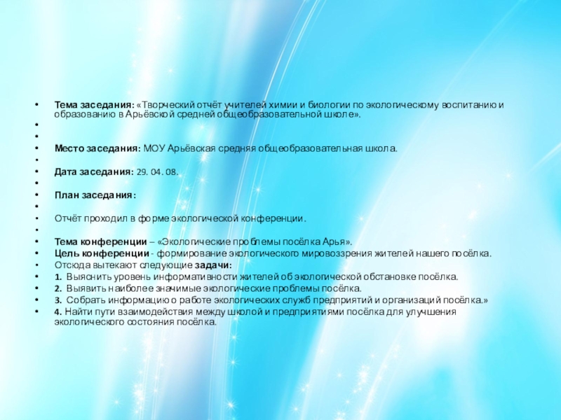 обеспечение необходимых условий для развития экологического образования, воспитания;