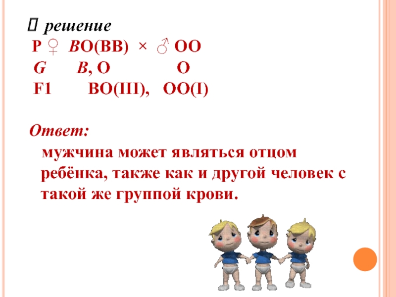 3) Один из родителей имеет третью группу крови, ребенок – первую. Какая группа крови может быть у второго родителя? (3)