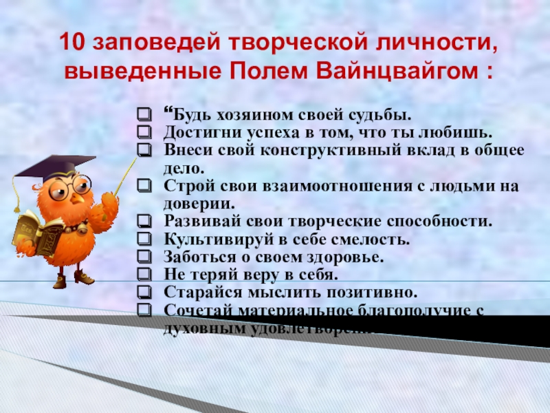 Это сайт презентаций, где можно хранить и обмениваться своими презентациями, докладами, проектами, шаблонами в формате PowerPoint с другими пользователями. Мы помогаем школьникам, студентам, учителям, преподавателям хранить и обмениваться учебными материалами.