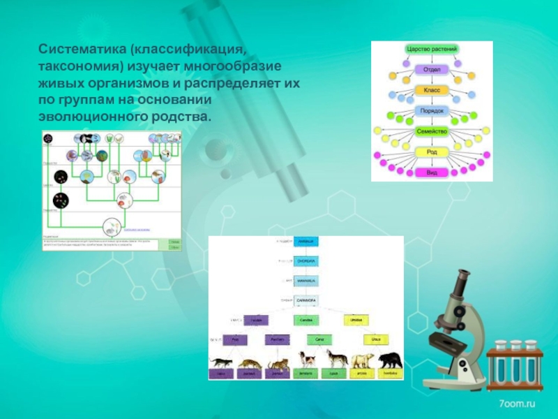 Слайд 11Систематика (классификация, таксономия) изучает многообразие живых организмов и распределяет их по