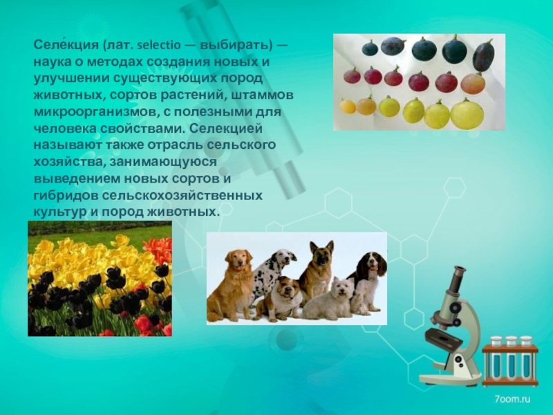 Слайд 8Селе́кция (лат. selectio — выбирать) — наука о методах создания новых