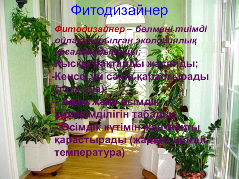 Фитодизайнер – бөлмені тиімді ойластырылған экологиялық көгалдандырушы;