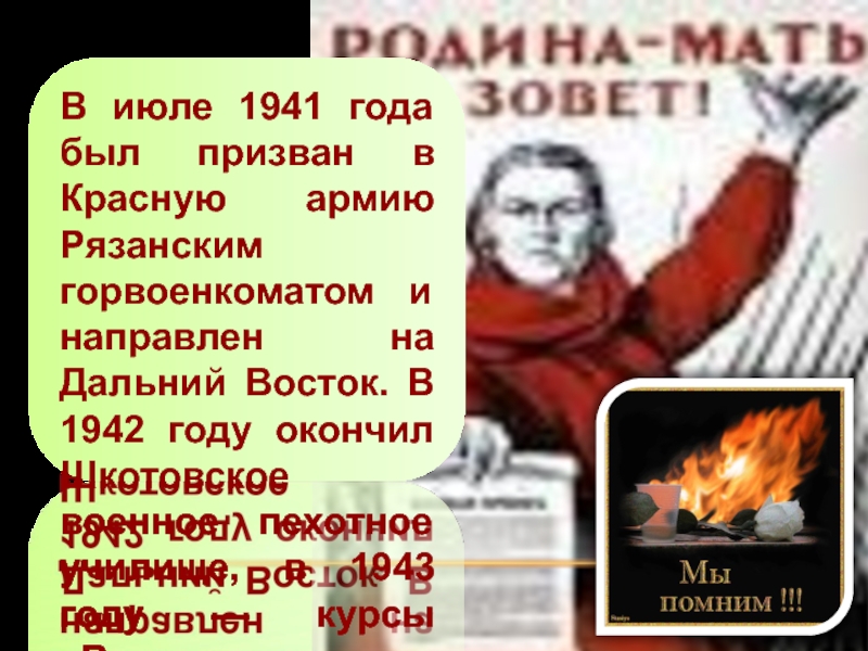 Слайд 5В июле 1941 года был призван в Красную армию Рязанским горвоенкоматом