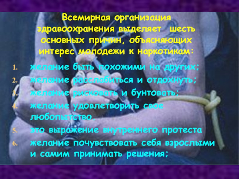 Всемирная организация здравоохранения выделяет шесть основных причин, объясняющих интерес молодежи к