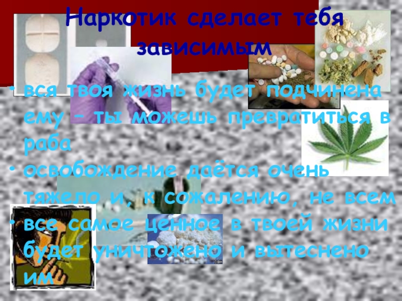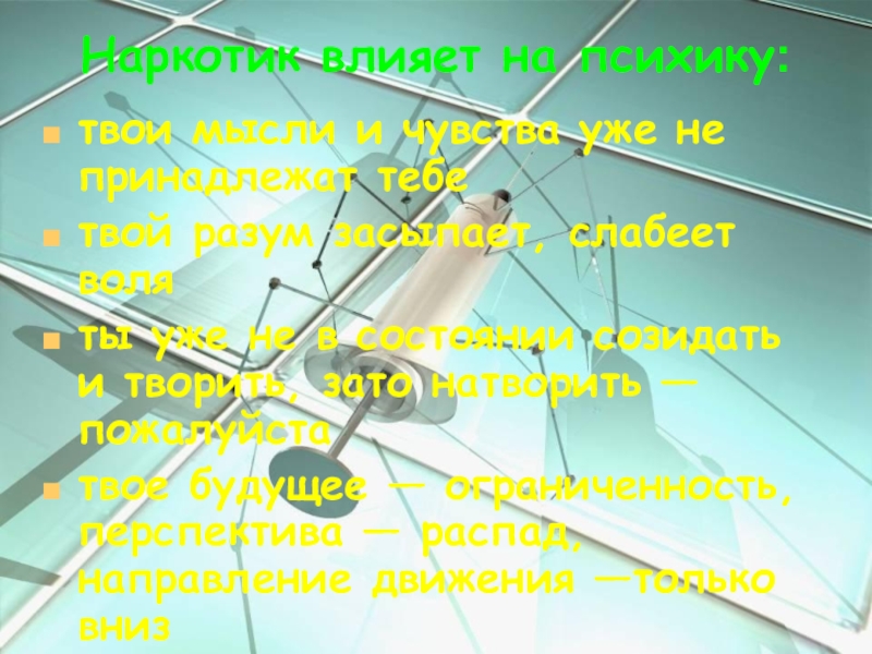 Слайд 12НАРКОТИК УКОРАЧИВАЕТ ЖИЗНЬ