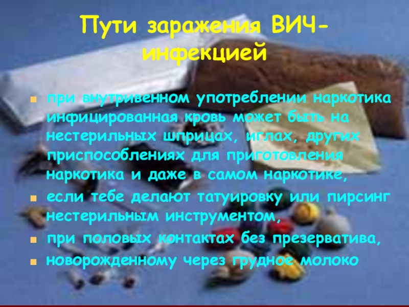 на нестерильных шприцах, иглах, других приспособлениях для приготовления наркотика и даже в самом наркотике,