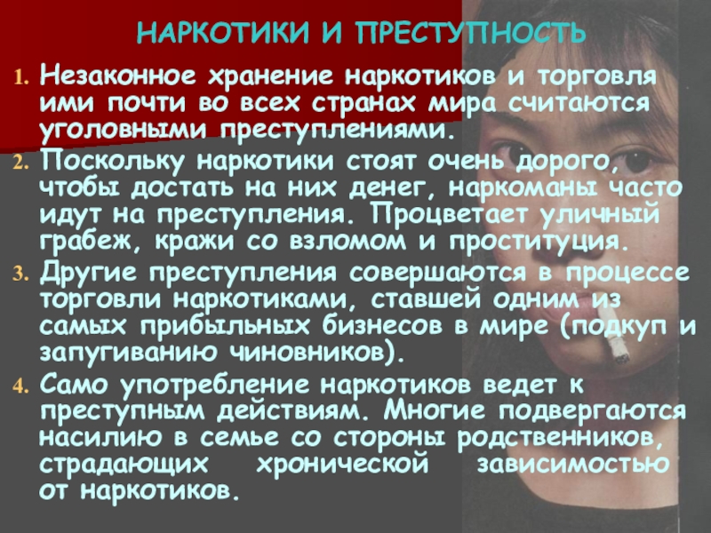Слайд 18НАРКОТИКИ И ПРЕСТУПНОСТЬ