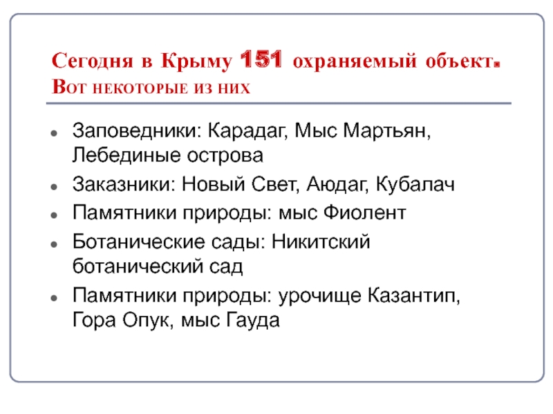 Слайд 3Сегодня в Крыму 151 охраняемый объект. ВОТ НЕКОТОРЫЕ ИЗ НИХ