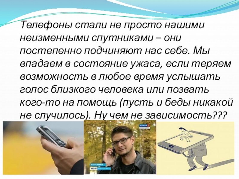 Слайд 7Телефоны стали не просто нашими неизменными спутниками – они постепенно подчиняют