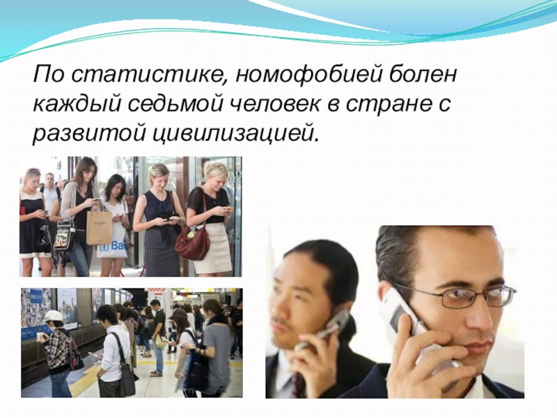 Слайд 4По статистике, номофобией болен каждый седьмой человек в стране с развитой