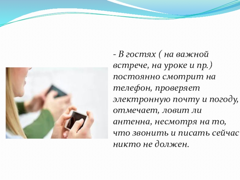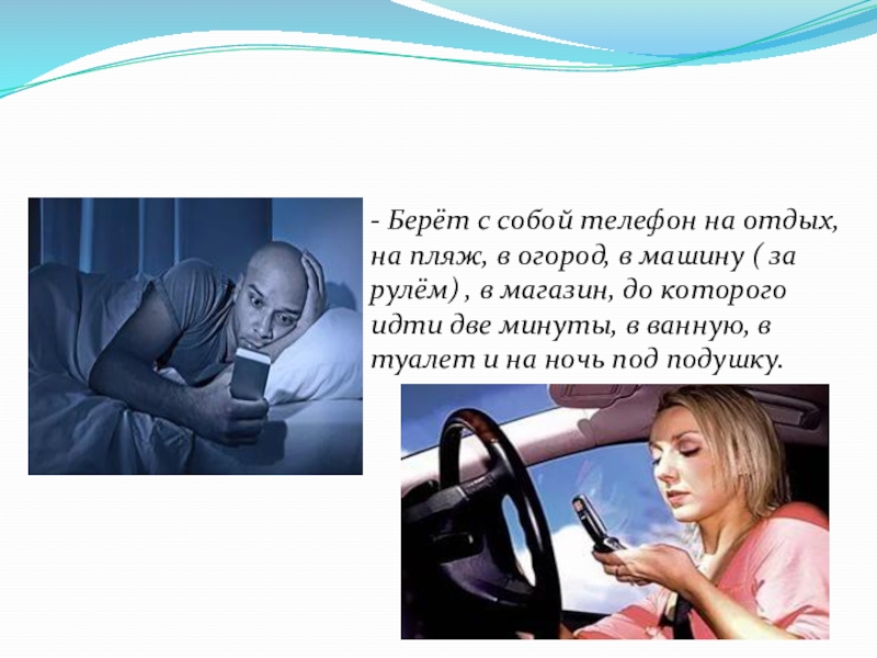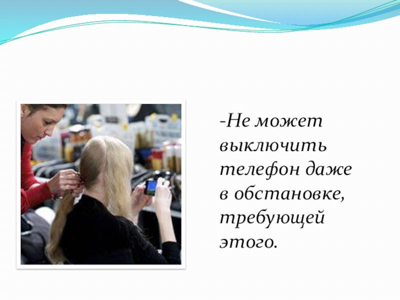 Слайд 12-Не может выключить телефон даже в обстановке, требующей этого.