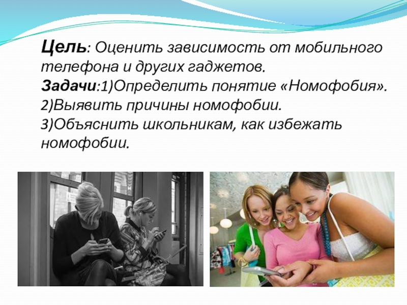 Слайд 2Цель: Оценить зависимость от мобильного телефона и других гаджетов.