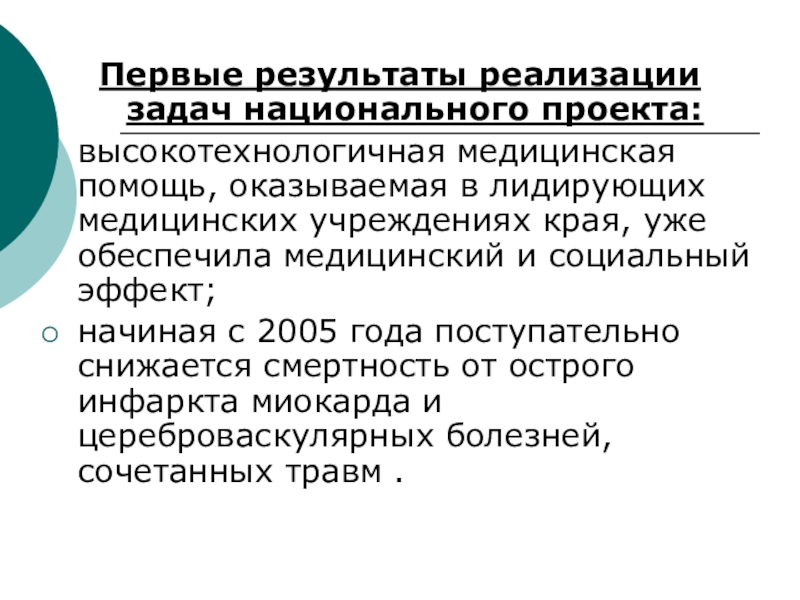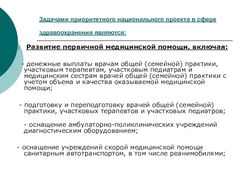 Слайд 4Задачами приоритетного национального проекта в сфере здравоохранения являются: