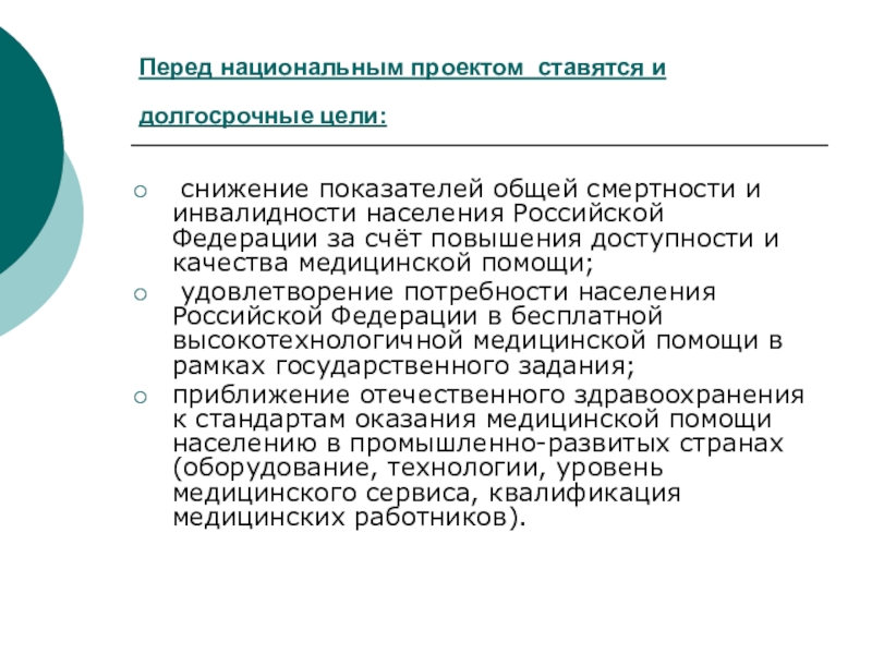 Слайд 8Перед национальным проектом ставятся и долгосрочные цели: