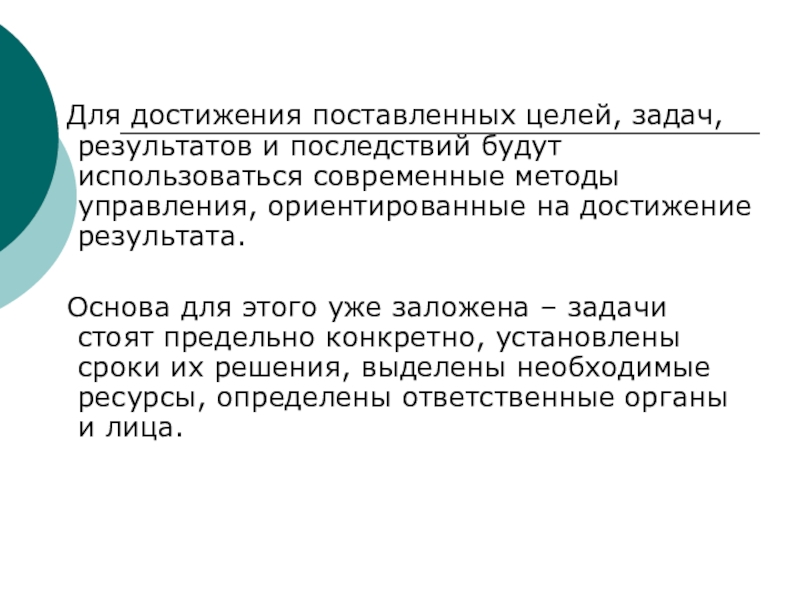 Для достижения поставленных целей, задач, результатов и последствий будут