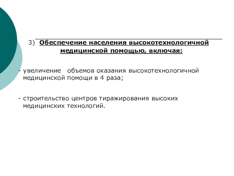 3) Обеспечение населения высокотехнологичной медицинской помощью, включая: