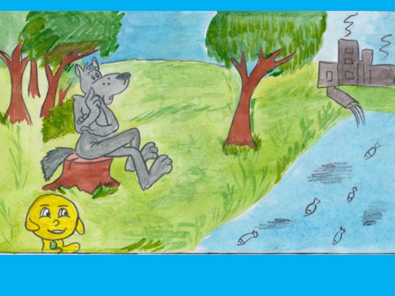 Шел он по лесу и встретил там серого волка. Волк сидел на пеньке и думал с