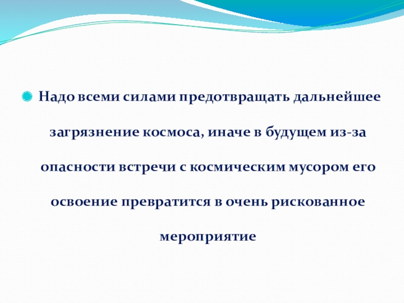 опасности встречи с космическим мусором его освоение превратится в очень рискованное мероприятие