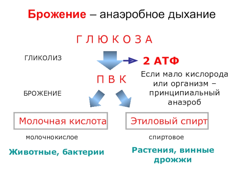 Если мало кислорода или организм – принципиальный анаэроб