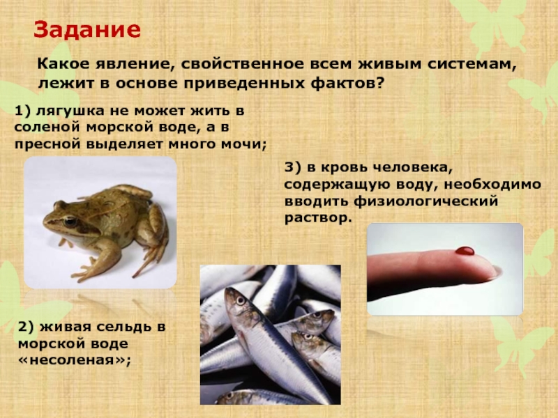 1) лягушка не может жить в соленой морской воде, а в пресной выделяет много мочи;
