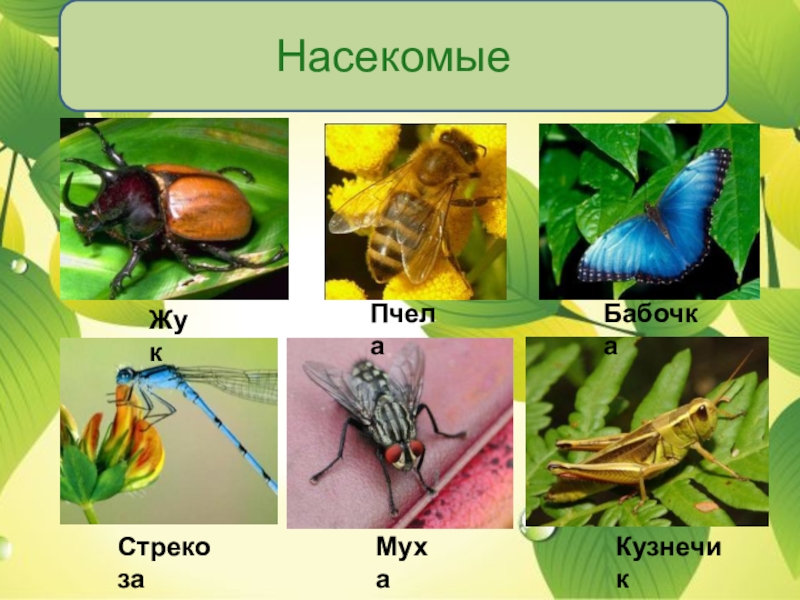 НасекомыеЖукПчелаБабочкаСтрекозаМухаКузнечик