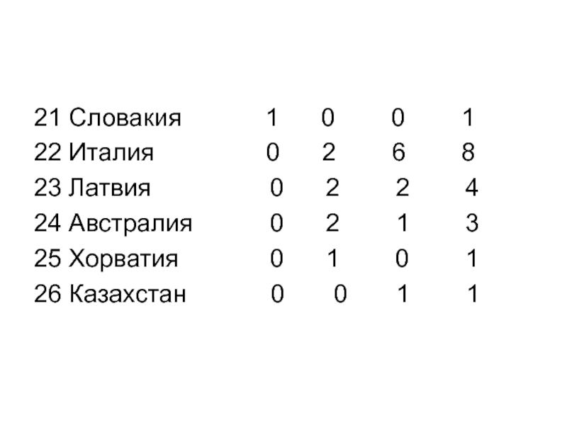 21 Словакия      1   0    0