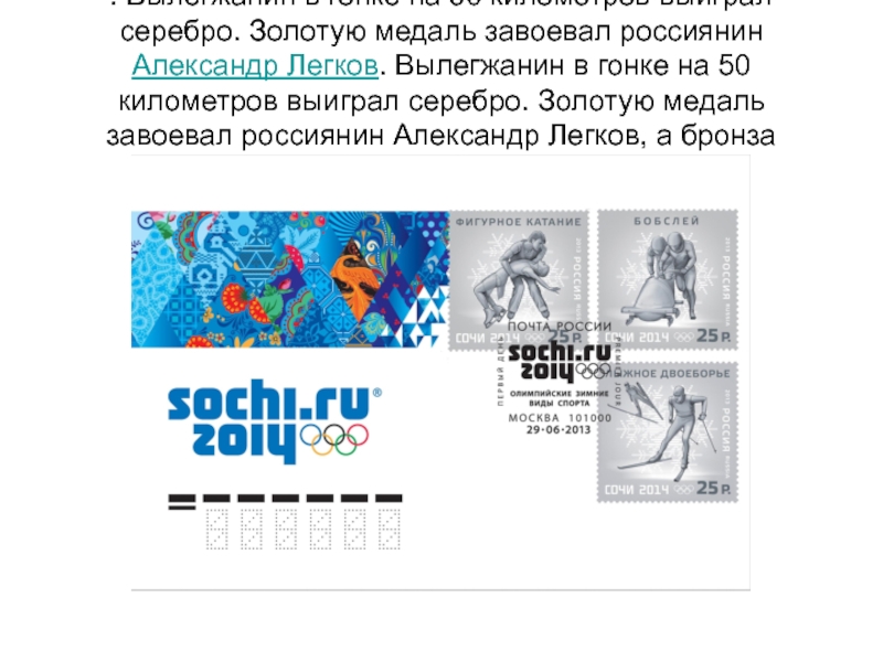 Слайд 18. Вылегжанин в гонке на 50 километров выиграл серебро. Золотую медаль