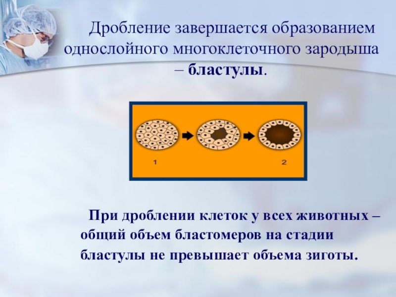 При делении бластомеров размеры их не увеличиваются, поэтому процесс деления носит название дробления.