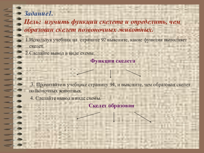 Цель: изучить функции скелета и определить, чем образован скелет позвоночных животных.