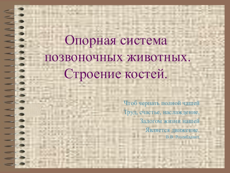 Слайд 1Опорная система позвоночных животных. Строение костей.